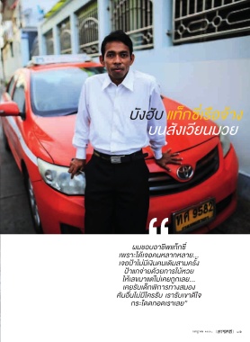บังฮบับน สแทัง็เกวซีย่ีเนรือมจว้ายง “ผมชอบอาชีพแท็กซ่ี 95 เพราะได้เจอคนหลากหลาย... เจอป้าไม่มีเงินคนเดิมสามครั้ง ป้าแกจ่ายด้วยการใบ้หวย ใเหค้เยลรขับมเาดแ็กตพ่ไมิก่เาครยทถาูกงเสลมยอ..ง. คันอ่ืนไม่มีใครรับ เรารับเขาดีใจ กระโดดกอดเราเลย” กรกฎาคม ๒๕๕๘