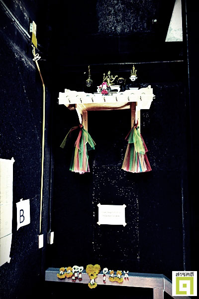 ตาม “โรงละคร” ต่างๆ ในเมืองไทย ไม่ว่าจะเป็นของทางราชการหรือเอกชน จึงต้องผนวกรวมพื้นที่ของสิ่งศักดิ์สิทธิ์เอาไว้ด้วย บางแห่งเป็นหิ้งอยู่เหนือทางขึ้นเวที บางโรงสร้างเหมือน “ห้องพระ” ขนาดย่อมๆ ไว้ด้านข้างเวที แต่ก็มีอีกหลายโรงที่แยกเฉพาะออกมาต่างหากเป็นห้องพิเศษเพื่อการนี้