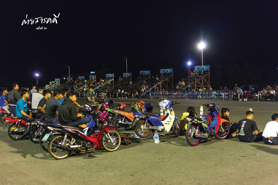 เสียง “แว้น แว้น” ดังก้องกังวานไปทั่วบริเวณของสนาม เห็นแสงไฟสว่างจ้าอยู่ทางด้านหลัง ที่ตรงนั้นคือบริเวณที่มีการประชันความเร็วระหว่างนักบิด ผมรีบเดินไปอย่างไม่รีรอ