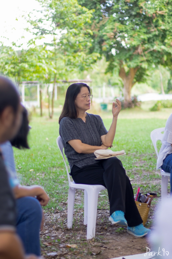 ช่วงเวลากว่าสามชั่วโมงจากกิจกรรมกับอาจารย์ทุกคนจนถึงส่วนสุดท้าย มีอาจารย์หลายท่านแชร์ว่าอยากนำกิจกรรมสำรวจผัสสะทั้งห้าไปใช้ก่อนเริ่มวิชาเลคเชอร์ในแต่ละครั้ง เพื่อชวนให้นักศึกษาได้เตรียมตัว รู้ตัวก่อนการเรียนรู้ และอยากใช้กิจกรรมวงแลกเปลี่ยนเรื่องตัวเองกับธรรมชาติเป็นเครื่องมือให้นักศึกษาในแต่ละชั้นปีสนิทกันมากขึ้นได้