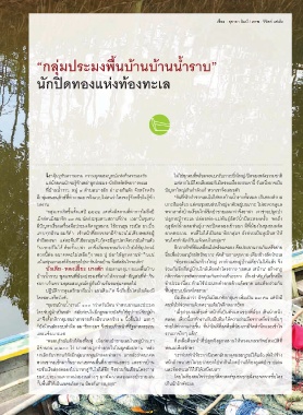 บ้านน�้าราบ พูดแทนพี่น้องประมงท่ีต่างให้ความส�าคัญต่อที่ท�ากิน บังเดียเล่าว่า ปัจจุบันมีสมาชิกกลุ่มฯ เพิ่มเป็น ๒๗ คน แต่ยังมี