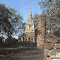อีกวัดหนึ่งที่น่าสนใจเข้าไปชมคือ วัดป่าสัก ต้องเดินทางออกนอกกำแพงเมืองตามทางหลวงหมายเลข ๑๐๑๖ ไปอีกประมาณ ๓๐๐ ม. ตามตำนานกล่าวว่าในปี พ.ศ. ๑๘๓๘ มีพระมหาเถระองค์หนึ่งชื่อพุทธโฆษาจารย์ ได้พระธาตุโคปผกะ (กระดูกตาตุ่มเบื้องขวา) ขนาดเท่าเมล็ดถั่วเขียวจากเมืองปาฏลีบุตร นำมาถวายพระเจ้าแสนภู และทรงพระกรุณาโปรดเกล้าฯ ให้สร้างพระมหาเจดีย์ สถาปนาเป็นพระอาราม เสร็จแล้วจึงโปรดให้ปลูกต้นสักล้อมรอบวัด ๓๐๐ ต้น